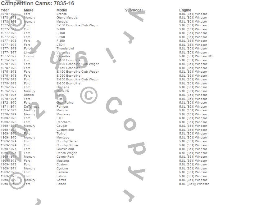 Bronco, Colony Park, Comet, Continental, Cougar, Country Sedan, Country Squire, Custom, Custom 500, Cyclone, E-100 Econoline, E-100 Econoline Club Wagon, E-150 Econoline, E-150 Econoline Club Wagon, E-250 Econoline, E-250 Econoline Club Wagon, E-350 Econoline, E-350 Econoline Club Wagon, Elite, F-100