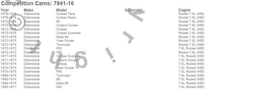 Below is an abbreviated list of applications for the High Energy Push Rods.