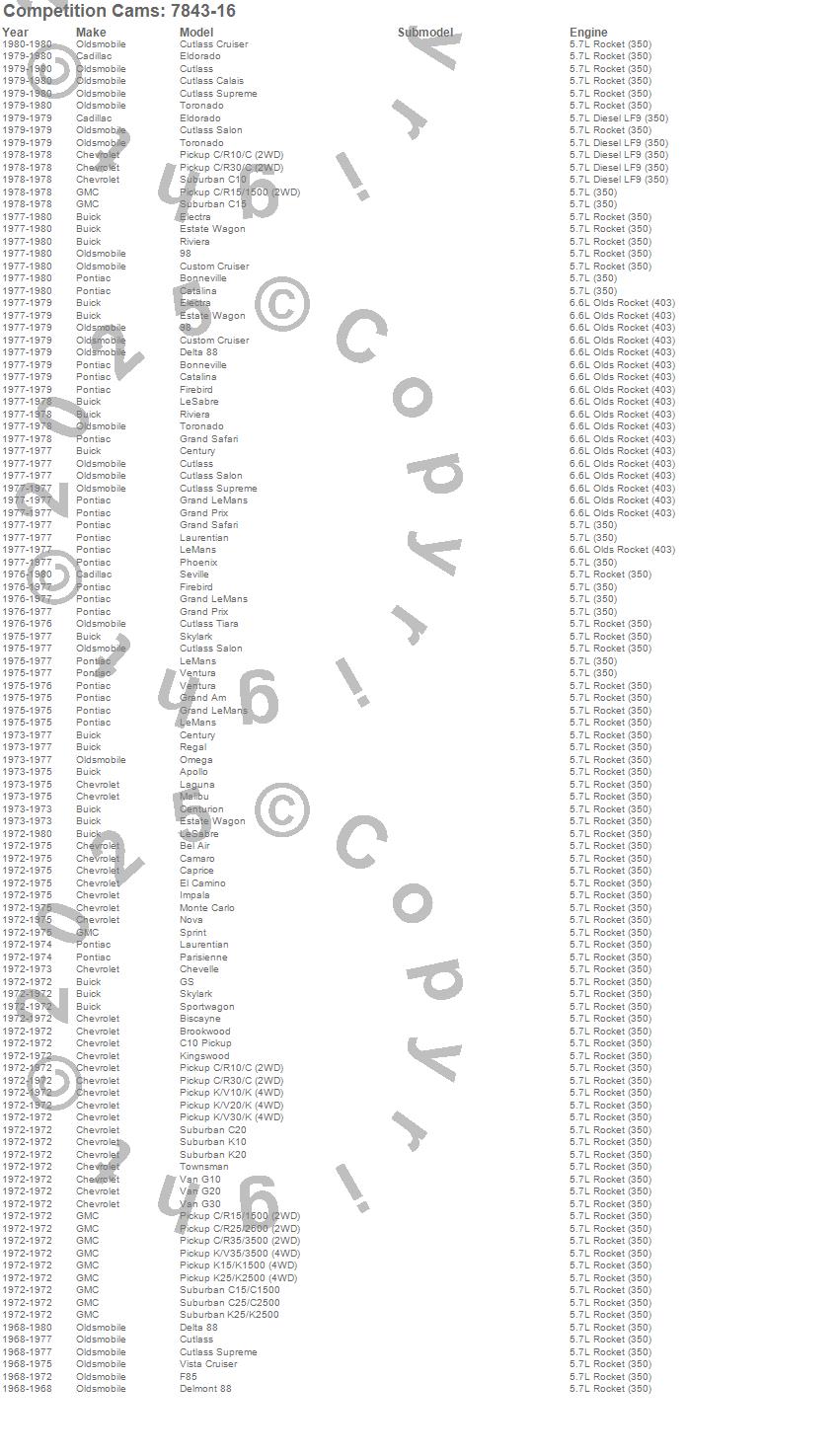 442, 98, Apollo, Bonneville, Brougham, Caprice, Catalina, Century, Custom Cruiser, Cutlass, Cutlass Calais, Cutlass Cruiser, Cutlass Salon, Cutlass Supreme, Cutlass Tiara, Delmont 88, Delta 88, Electra, Estate Wagon, F85