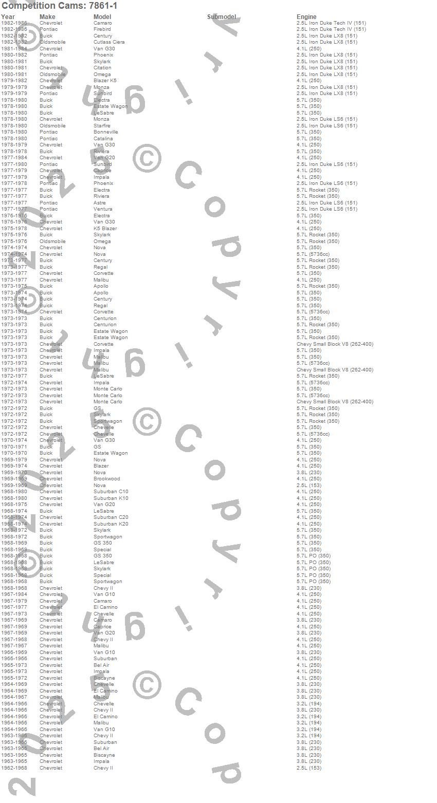 Apollo, Astre, Bel Air, Biscayne, Blazer, Blazer K5, Bonneville, Brookwood, C10 Suburban, C20 Suburban, Camaro, Caprice, Catalina, Centurion, Century, Chevelle, Chevy II, Citation, Corvette, Cutlass Ciera