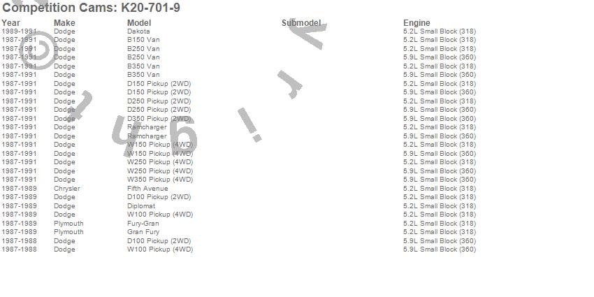 Below is an abbreviated list of applications for the Magnum Camshaft Kit.