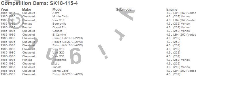 Below is an abbreviated list of applications for the High Energy Camshaft Small Kit.