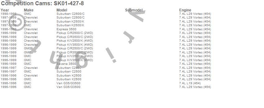 Below is an abbreviated list of applications for the Xtreme Energy Camshaft Small Kit.