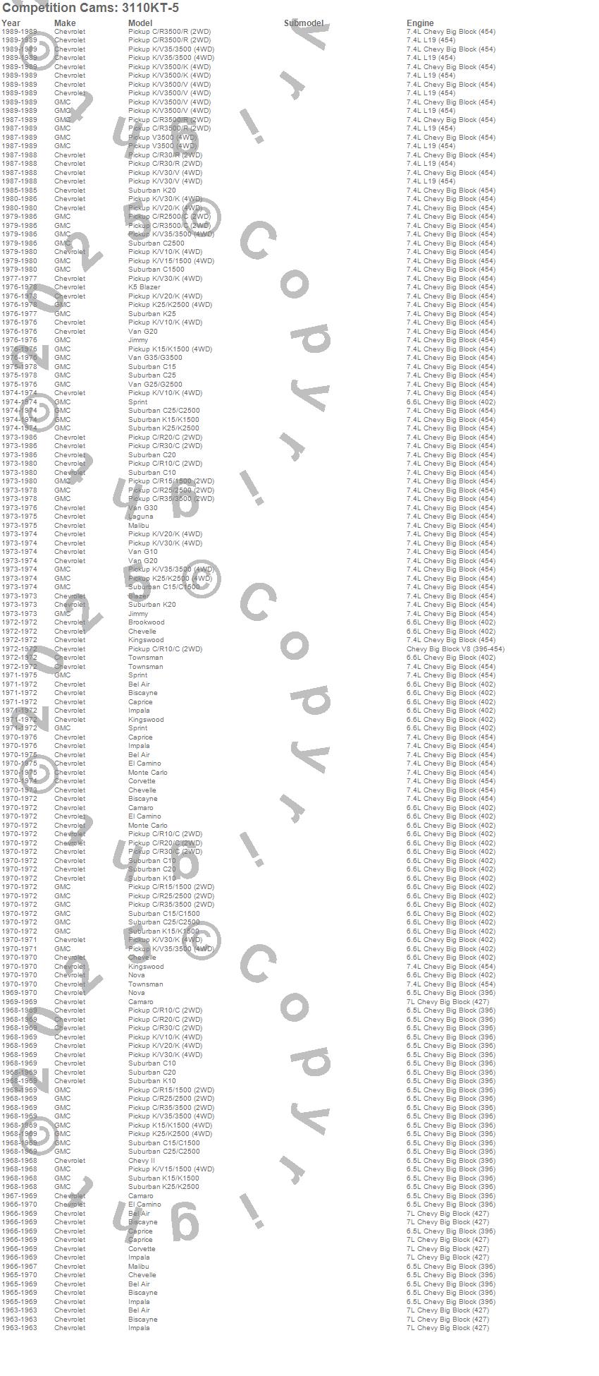 Bel Air, Biscayne, Blazer, Blazer K5, Brookwood, C10 Pickup, C10 Suburban, C15 Suburban, C15/C1500 Suburban, C1500 Pickup, C1500 Suburban, C20 Pickup, C20 Suburban, C25 Suburban, C25/C2500 Pickup, C25/C2500 Suburban, C2500 Pickup, C2500 Suburban, C30 Pickup, C35/C3500 Pickup