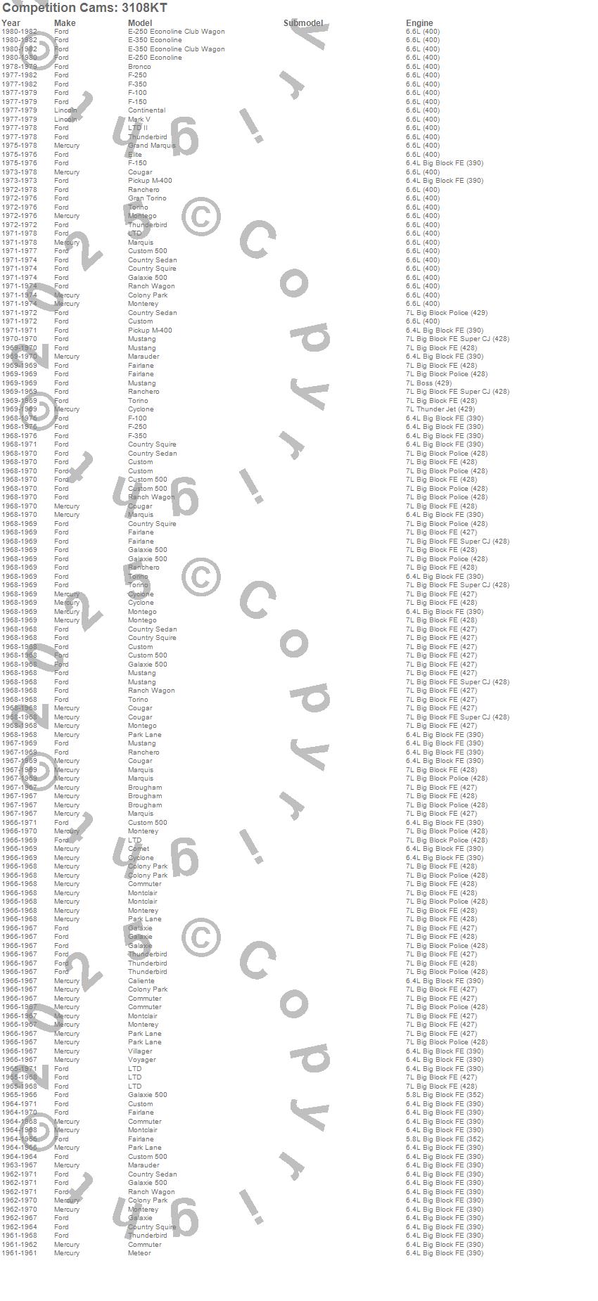 Below is an abbreviated list of applications for the Adjustable Timing Set.
