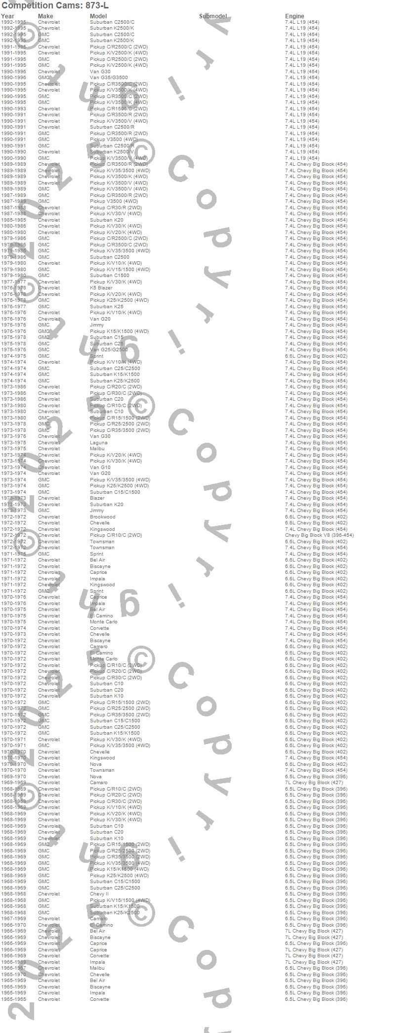 Bel Air, Biscayne, Blazer, Blazer K5, Brookwood, C10 Pickup, C10 Suburban, C15 Suburban, C15/C1500 Suburban, C1500 Pickup, C1500 Suburban, C20 Pickup, C20 Suburban, C25 Suburban, C25/C2500 Pickup, C25/C2500 Suburban, C2500 Pickup, C2500 Suburban, C30 Pickup, C35/C3500 Pickup