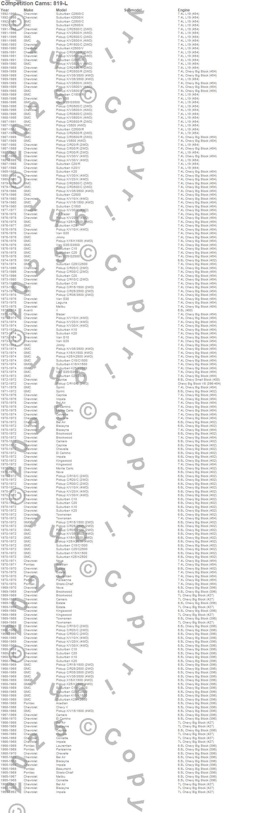 Below is an abbreviated list of applications for the Roller Lifter Link Bar.