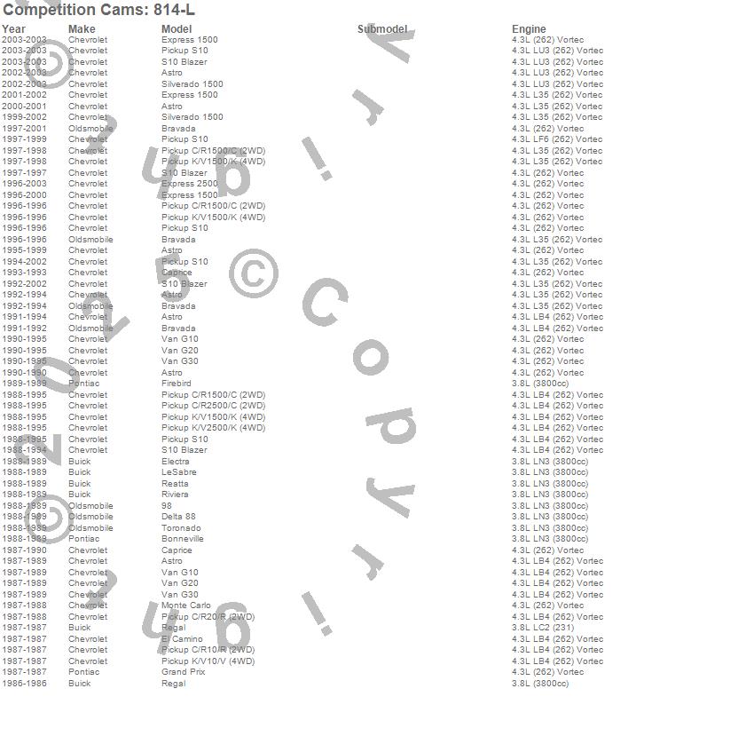 98, Astro, Bonneville, Bravada, C1500 Pickup, C2500 Pickup, Caprice, Delta 88, El Camino, Electra, Express 1500, Express 2500, Firebird, G10 Van, G20 Van, G30 Van, Grand Prix, K1500 Pickup, K2500 Pickup, LeSabre