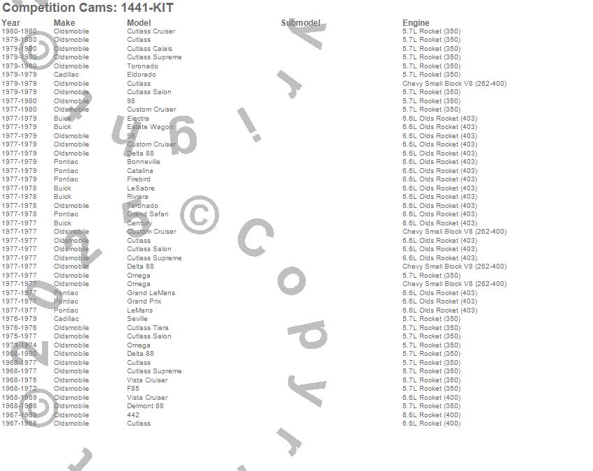 Below is an abbreviated list of applications for the Rocker Arm And Push Rod Kit.