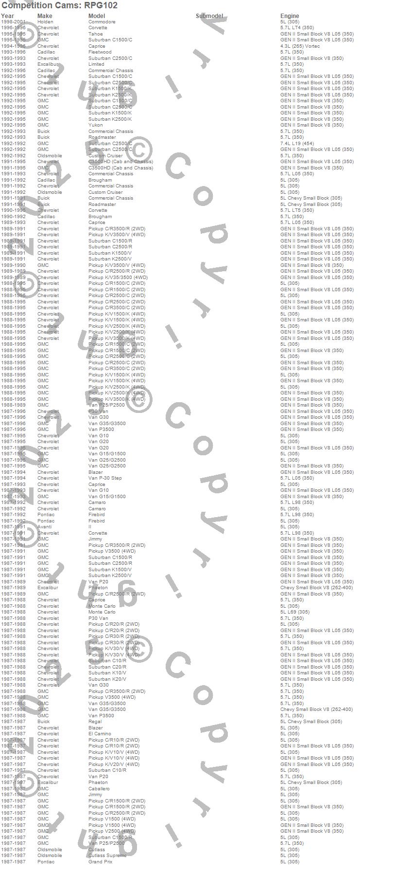 Blazer, Brougham, C1500 Pickup, C1500 Suburban, C2500 Pickup, C2500 Suburban, C3500 Pickup, C3500HD, Caballero, Camaro, Caprice, Commercial Chassis, Commodore, Corvette, Custom Cruiser, Cutlass, Cutlass Supreme, El Camino, Firebird, Fleetwood