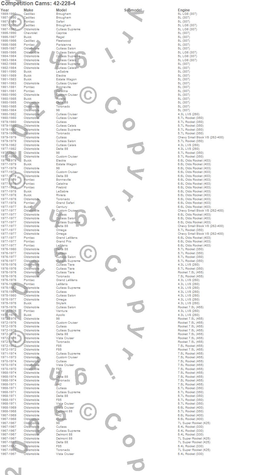 Competition Cams 42-228-4 High Energy Camshaft Hyd. Flat Tappet - 1200-5200rpm - Adv. Dur. 260 Int./Exh. - Valve Lift .447 Int./Exh. - Lobe Angle 110 deg. - Oldsmobile