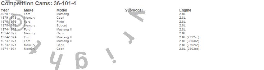 Below is an abbreviated list of applications for the High Energy Camshaft.