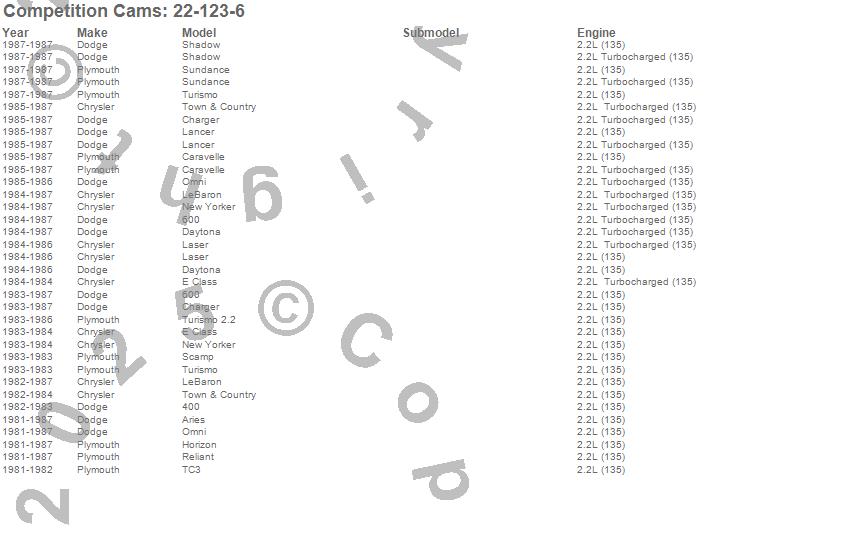 Below is an abbreviated list of applications for the High Energy Camshaft.