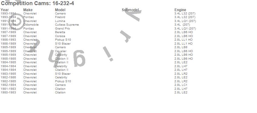Below is an abbreviated list of applications for the High Energy Camshaft.
