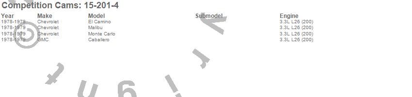 Below is an abbreviated list of applications for the High Energy Camshaft.