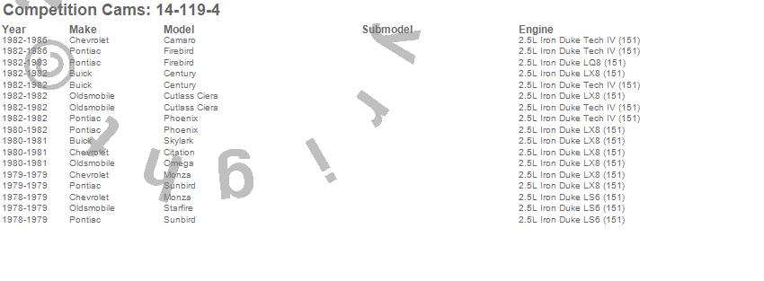 Below is an abbreviated list of applications for the High Energy Camshaft.