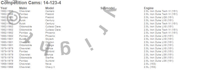 Below is an abbreviated list of applications for the High Energy Camshaft.