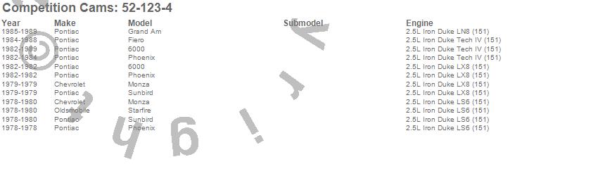 Below is an abbreviated list of applications for the High Energy Camshaft.