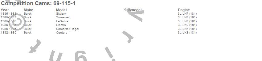 Below is an abbreviated list of applications for the High Energy Camshaft.