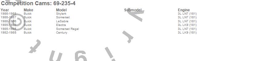Below is an abbreviated list of applications for the High Energy Camshaft.
