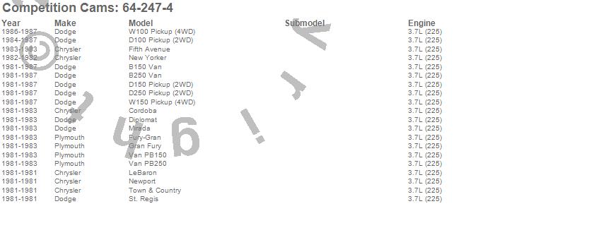 Below is an abbreviated list of applications for the High Energy Camshaft.