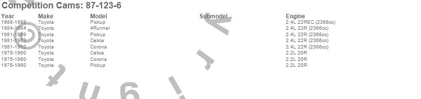 Below is an abbreviated list of applications for the High Energy Camshaft.
