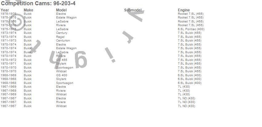 Below is an abbreviated list of applications for the High Energy Camshaft.