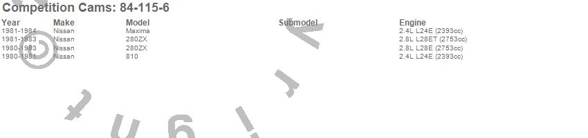 Below is an abbreviated list of applications for the High Energy Camshaft.