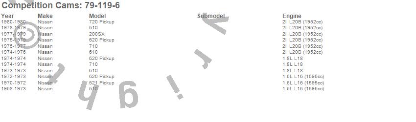 Below is an abbreviated list of applications for the High Energy Camshaft.