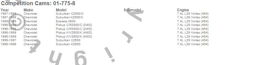 Below is an abbreviated list of applications for the Xtreme Energy Camshaft.