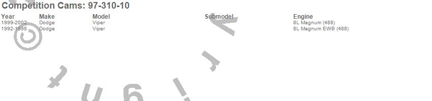 Below is an abbreviated list of applications for the Xtreme Energy Camshaft.