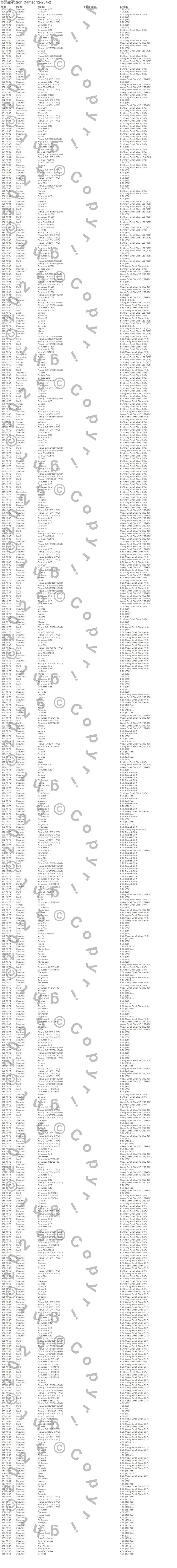 Below is an abbreviated list of applications for the Xtreme Energy Camshaft.