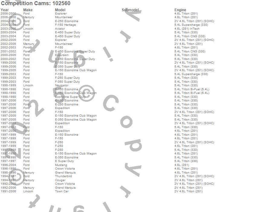 Aviator, Cougar, Crown Victoria, E Super Duty, E-150 Econoline, E-150 Econoline Club Wagon, E-250 Econoline, E-250 Super Duty, E-350 Econoline, E-350 Econoline Club Wagon, E-350 Super Duty, E-450 Econoline Super Duty, E-450 Econoline Super Duty Stripped, E-450 Super Duty, E-450 Super Duty Stripped Chassis, Econoline Super Duty, Excursion, Expedition, Explorer, F-150