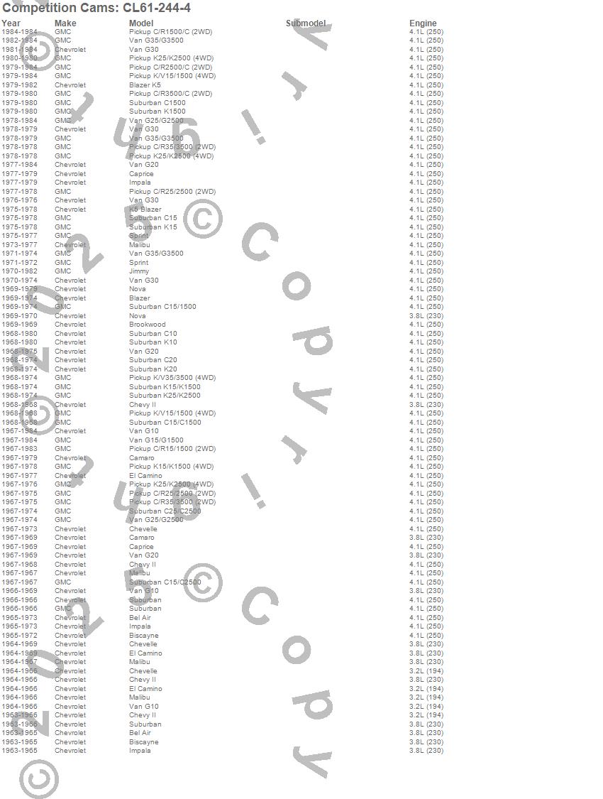 Below is an abbreviated list of applications for the Magnum Camshaft/Lifter Kit.