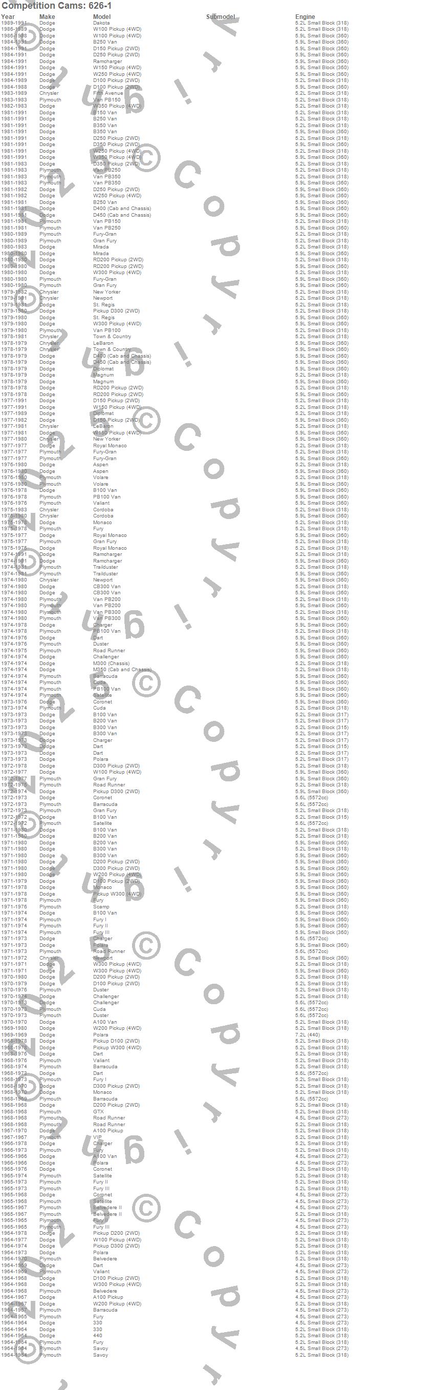 330, 440, 880, A100 Van, Aspen, B100 Van, B150 Van, B200 Van, B250 Van, B300 Van, B350 Van, Barracuda, Belvedere, Belvedere II, CB300 Van, Challenger, Charger, Cordoba, Coronet, Cuda