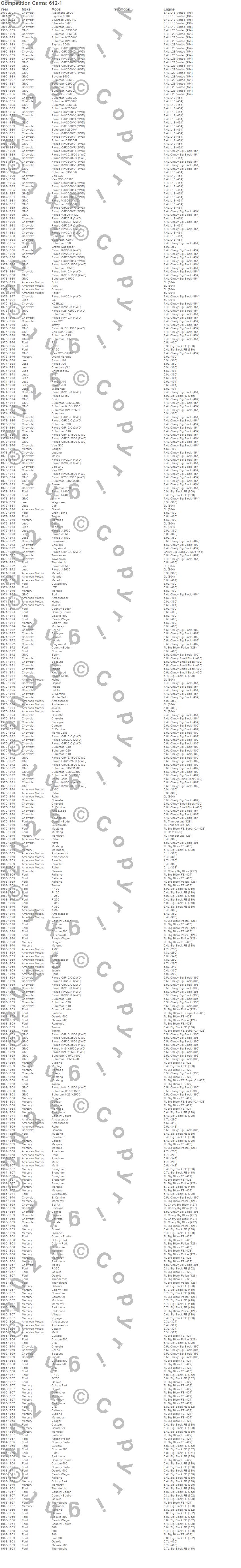Ambassador, American, AMX, Avalanche 2500, Bel Air, Biscayne, Blazer, Blazer K5, Breezeway, Brookwood, Brougham, C10 Pickup, C10 Suburban, C15 Suburban, C15/C1500 Suburban, C1500 Pickup, C1500 Suburban, C20 Pickup, C20 Suburban, C25 Suburban