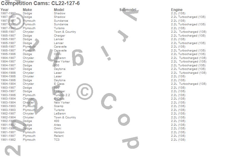Below is an abbreviated list of applications for the High Energy Camshaft/Lifter Kit.