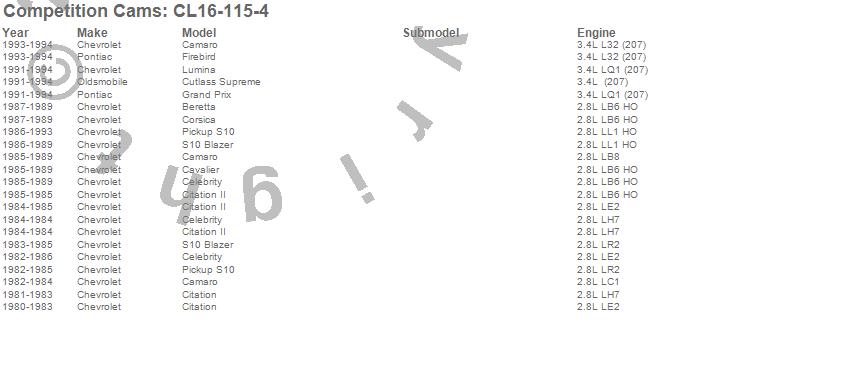 Below is an abbreviated list of applications for the High Energy Camshaft/Lifter Kit.