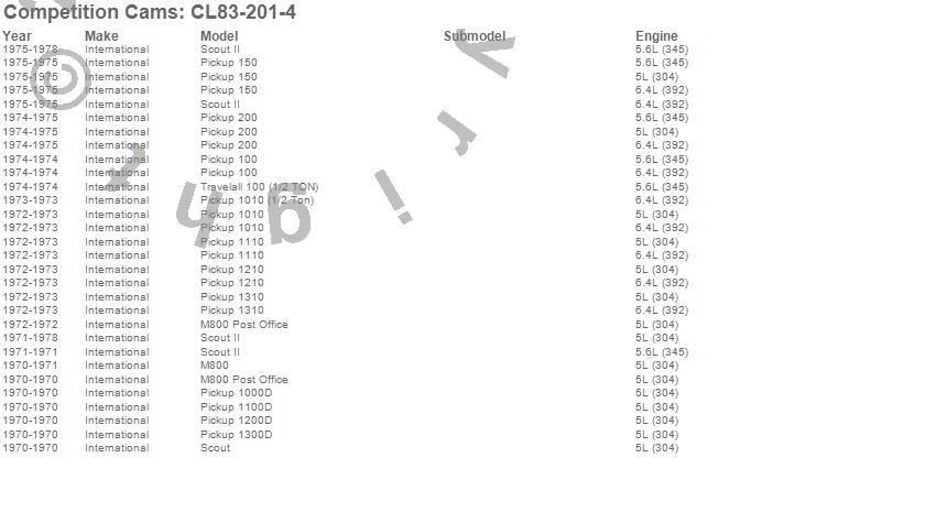 Below is an abbreviated list of applications for the High Energy Camshaft/Lifter Kit.
