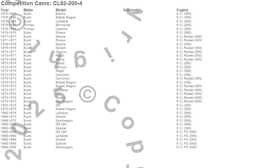 Below is an abbreviated list of applications for the High Energy Camshaft/Lifter Kit.