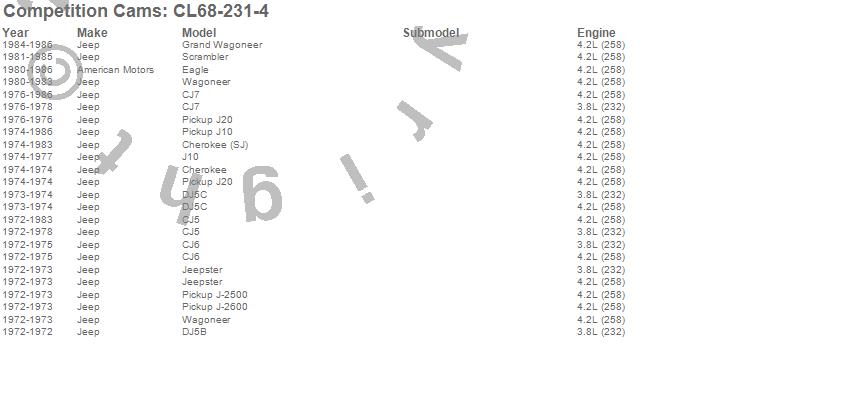 Competition Cams CL68-231-4 Xtreme 4 X 4 Camshaft/Lifter Kit Hyd Flat Tappet - 800-5000rpm - Adv.Dur. 250 Int./258 Exh. - V.Lift .482 Int./.485 Exh. - Lobe 111 deg - Incl. Cam - Lifters