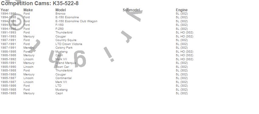 Below is an abbreviated list of applications for the Xtreme Energy Camshaft Kit.
