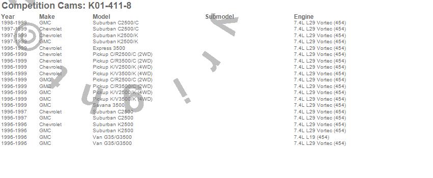 Below is an abbreviated list of applications for the Xtreme Energy Camshaft Kit.
