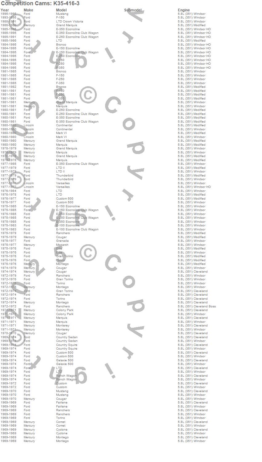 Below is an abbreviated list of applications for the Dual Energy Camshaft Kit.