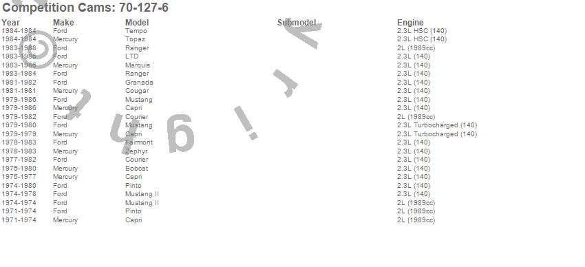 Below is an abbreviated list of applications for the Magnum Camshaft.