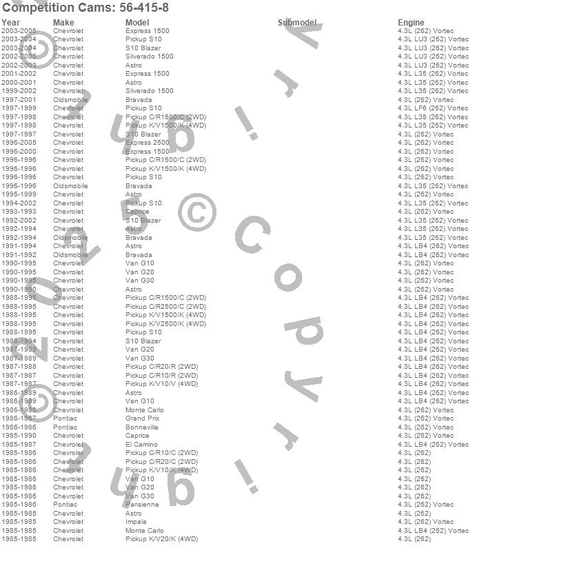 Below is an abbreviated list of applications for the Magnum Camshaft.