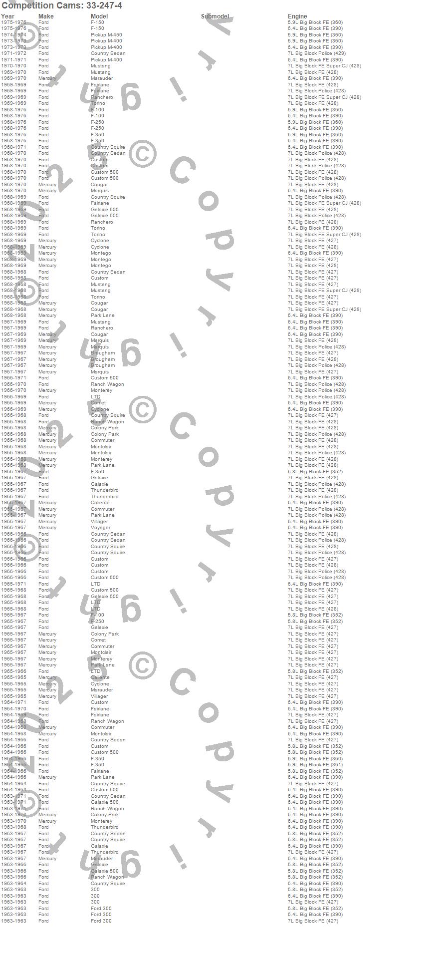 Below is an abbreviated list of applications for the Magnum Camshaft.