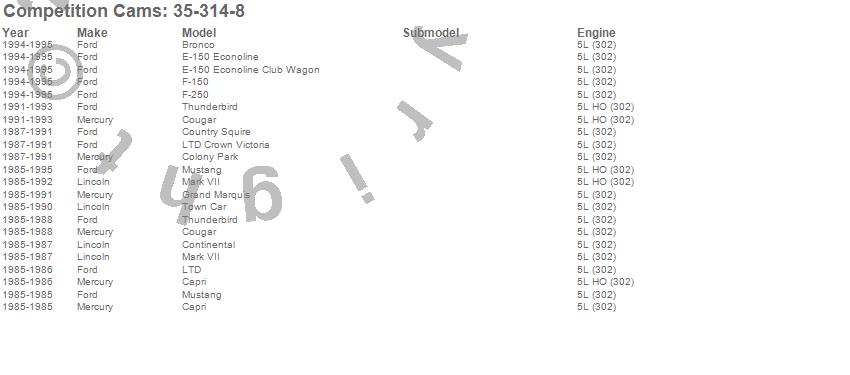 Below is an abbreviated list of applications for the Magnum Camshaft.
