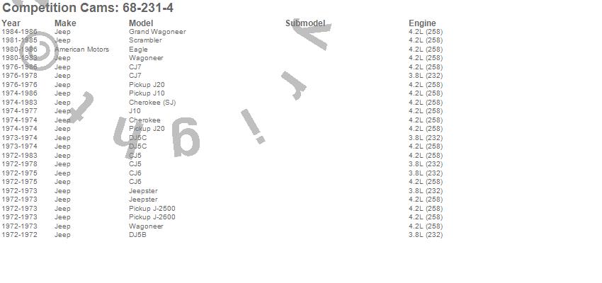 Competition Cams - Xtreme 4 X 4 Camshaft P/N 68-231-4 Features: