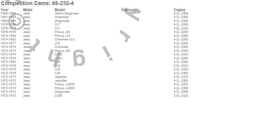 Below is an abbreviated list of applications for the Xtreme 4 X 4 Camshaft.